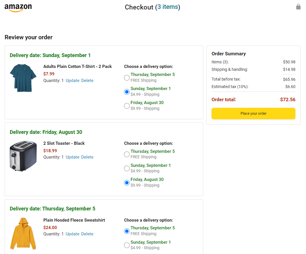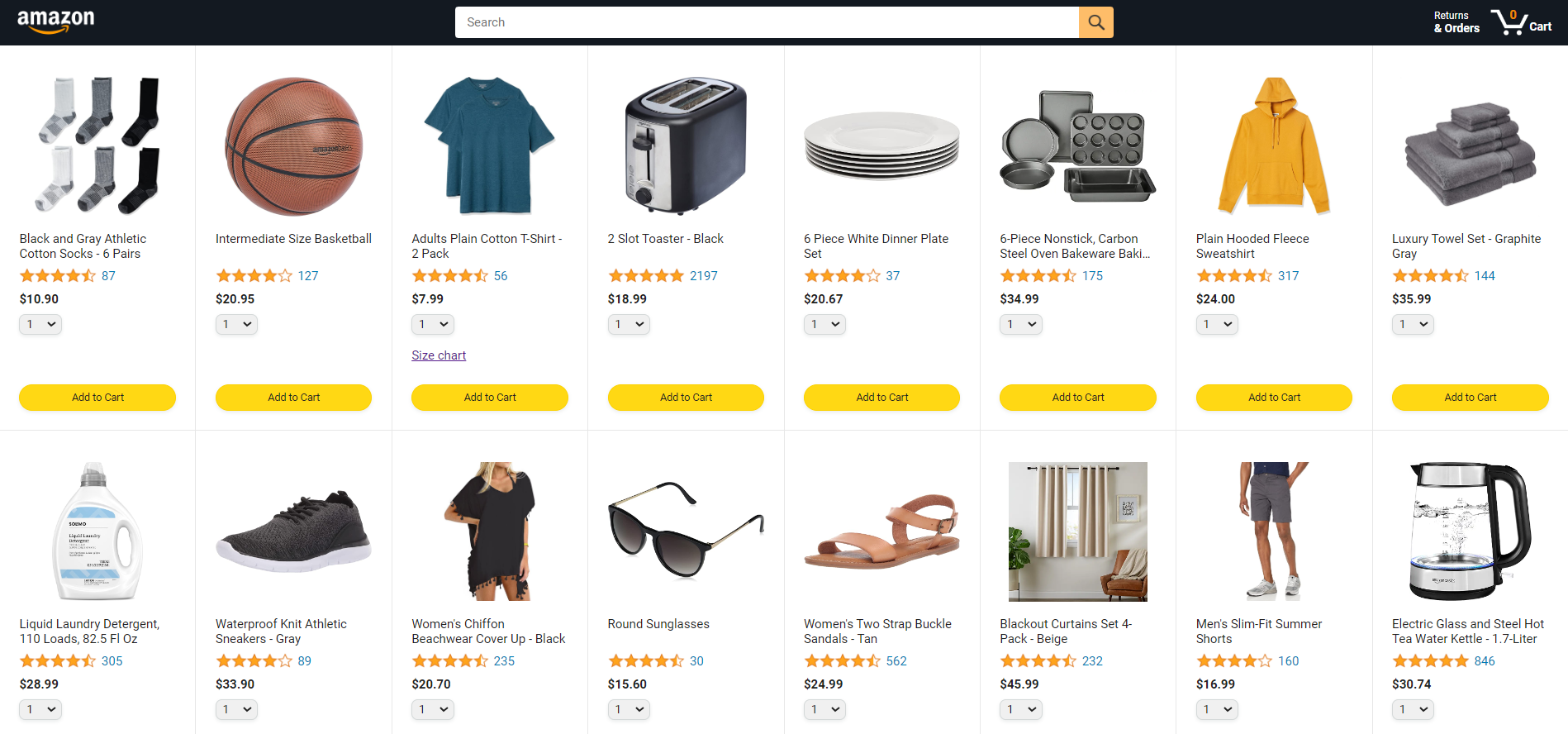 This project is a functional clone of Amazon.com, featuring a selection of products and essential e-commerce functionalities. Users can browse and add items to their cart, with logic in place to update the cart dynamically. The system also calculates and updates the total cost of products, factoring in delivery charges and tax.